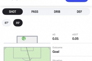 数据网站Sofascore晒出居莱尔射门路线图,并调侃道:“我们可能需要重新设计球员的射门路线图了,因为半场图已经放不下这脚吊射了。”