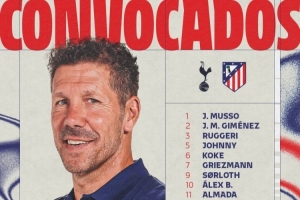 马竞对热刺次回合名单:阿尔瓦雷斯、格列兹曼在列,奥布拉克缺席