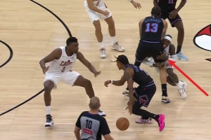 GIF-施罗德挤过掩护时肩膀直接撞到理查兹裆部