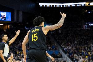体育资讯3月26日讯 勇士主场109-106险胜篮网。赛后,勇士球员桑托斯接受媒体采访。