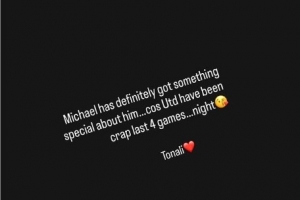 斯科尔斯写道:“迈克尔(卡里克)身上肯定有某种特别之处……因为曼联最近4场比赛表现简直烂透了……晚安?托纳利❤️”